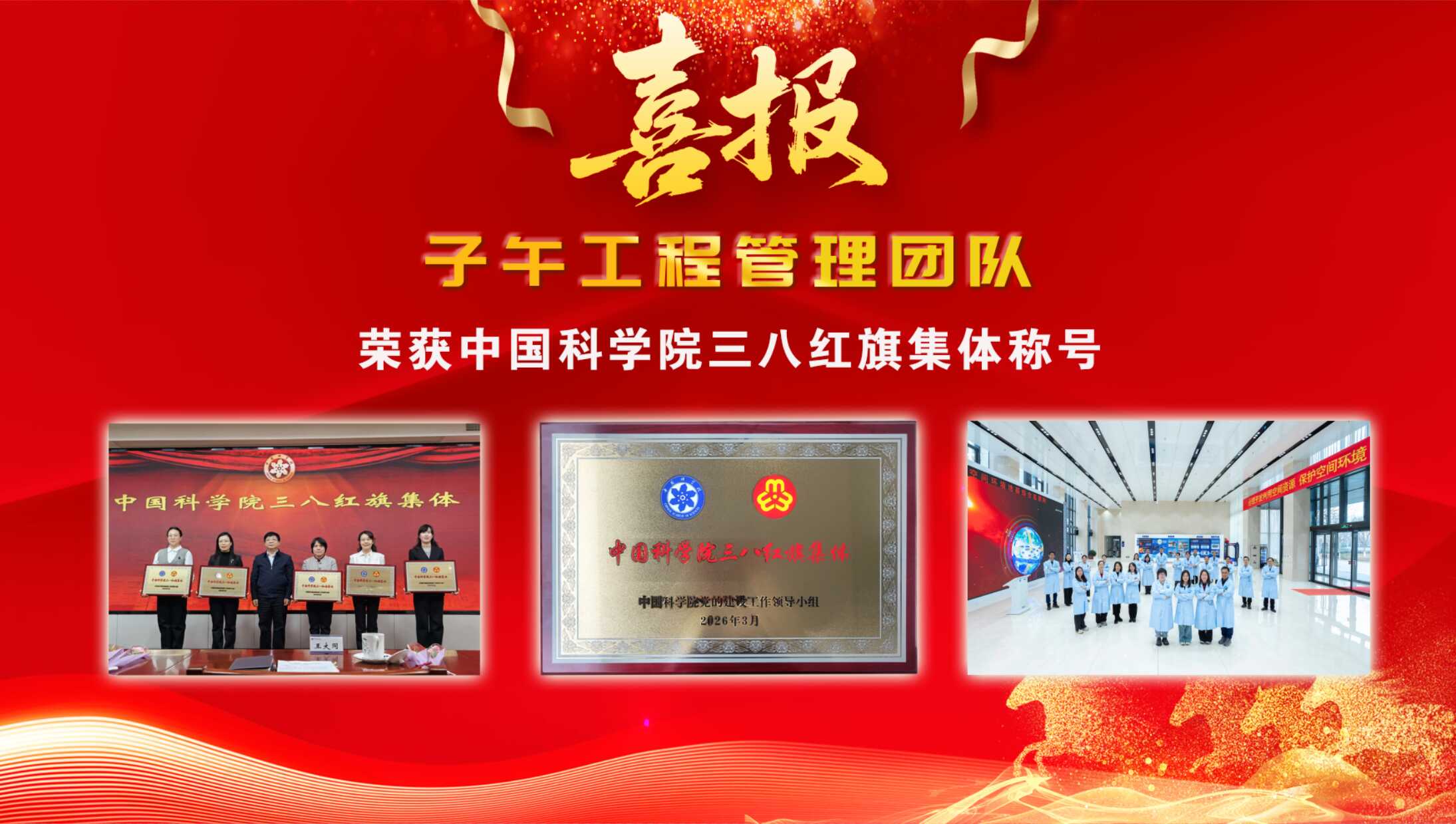 3月5日,在国际劳动妇女节来临之际,中国科学院妇工委公布了中国科学院三八红旗手、三八红旗集体名单。子午工程管理团队凭借在大科学装置管理中团结协作的工作作风和奋发有为的团队风貌,光荣上榜,荣获“中国科学院三八红旗集体”称号。