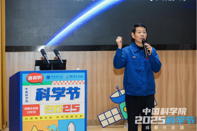 11月7日,中国首批航天员赵传东在中国科学院成都分院科学城园区为成都中小学的同学们带来题为“星空浩瀚 探索无限”讲座。赵传东带领全体师生一起重温了航天员入队誓词,生动讲述了航天员类型、训练细节和“训练终止按钮从未被按下”的震撼故事,展现了中国航天人“特别能吃苦、特别能战斗”的精神底色,在同学们心中深植了航天报国的精神火种。