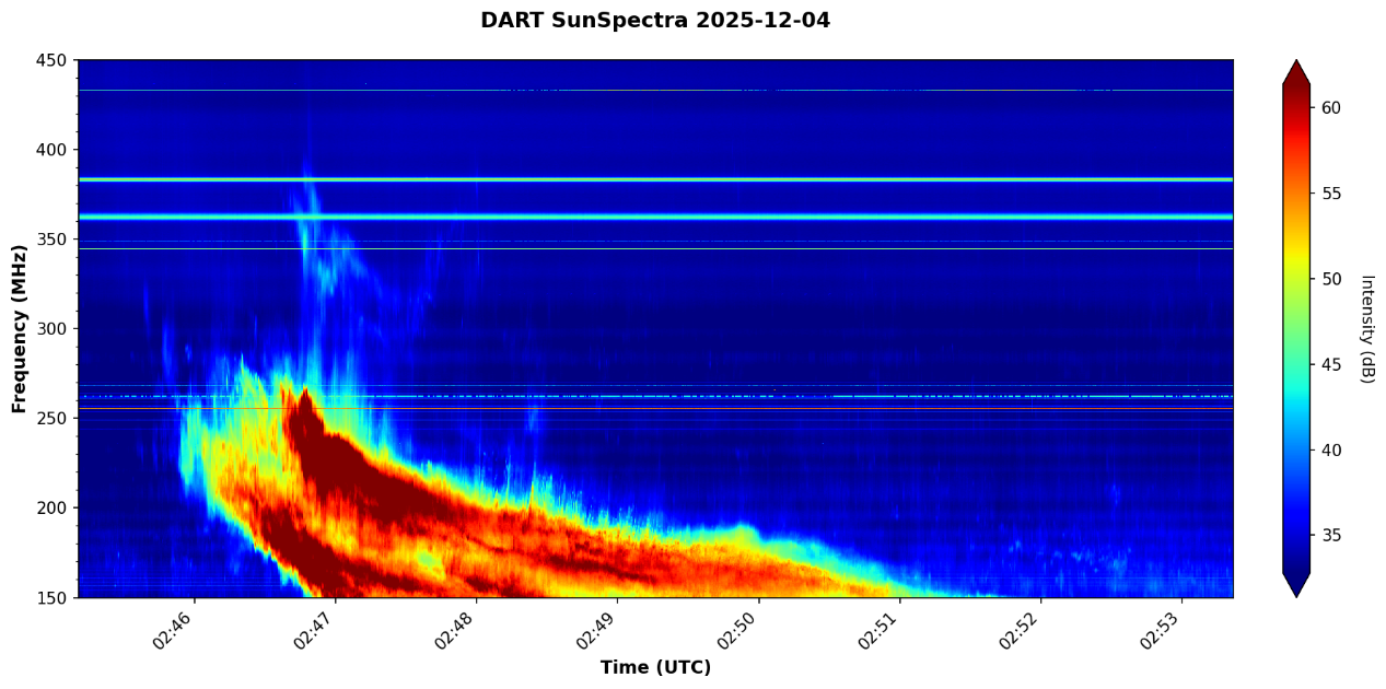 圆环阵太阳射电成像望远镜观测所得的太阳射电暴事件频谱图[供图:天气室DART研究团队]