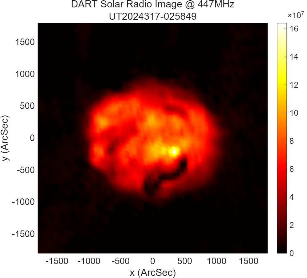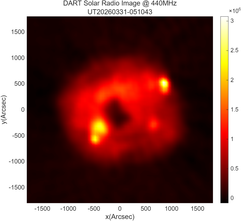 圆环阵太阳射电成像望远镜观测所得的太阳事件射电图像[供图:天气室DART研究团队]
