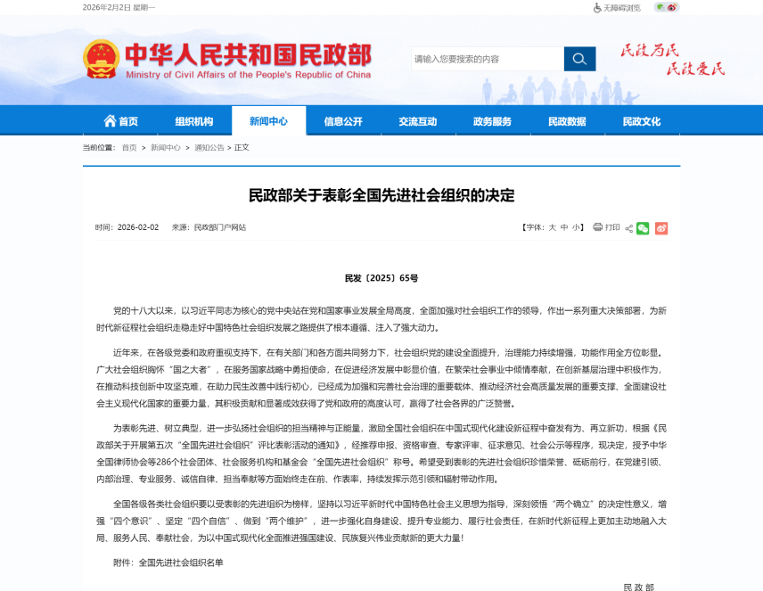 2月2日,民政部发布了《关于表彰全国先进社会组织的决定》,中国空间科学学会(挂靠单位为中国科学院国家空间科学中心)在民政部组织的第五次“全国先进社会...