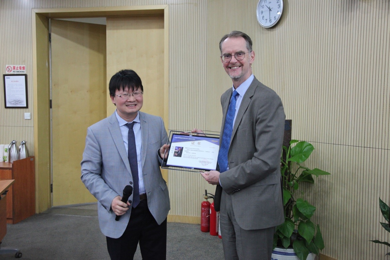 现场气氛热烈,科研人员和学生向Kenneth Holmlund 博士踊跃提问,他一一详细解答。报告结束后,董晓龙副主任代表国家空间科学中心向Kenneth Holmlund 博士颁发了荣誉证书。