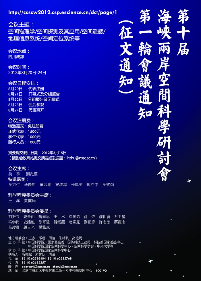 (2012年8月20日-24日)第十届海峡两岸空间科学研讨会