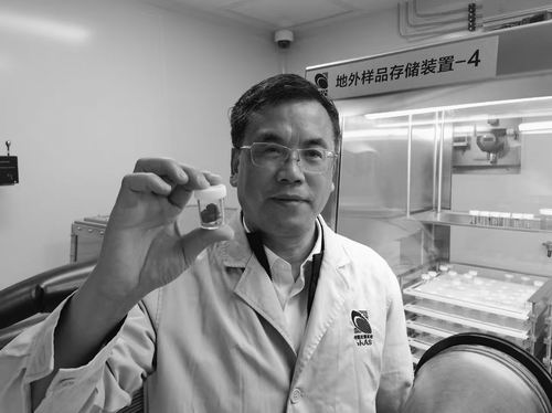 手执月壤样品的王赤。中国科学院国家空间科学中心供图