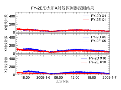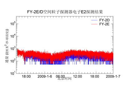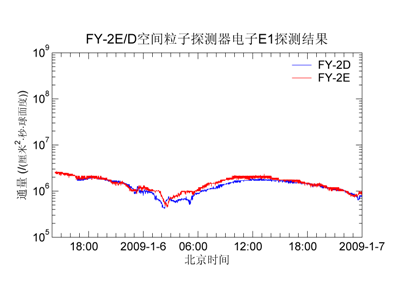 2009年1月5日下午2点18分,风云二号E星空间环境监测器开机。开机后,各单机工作正常,并通过中心自建地面接收系统实时获得仪器探测数据。自仪器开机工作至今,空间环境非常平静,未发生M级及其以上级别太阳耀斑,无太阳质子事件发生,探测响应数据结果符合空间分布规律。
