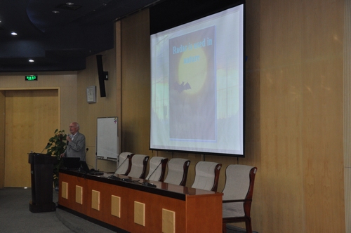 图一: 王赤研究员作主题报告  图二:德国雷达专家Jürgen Röttger教授以Important Radars on Earth为题作报告
