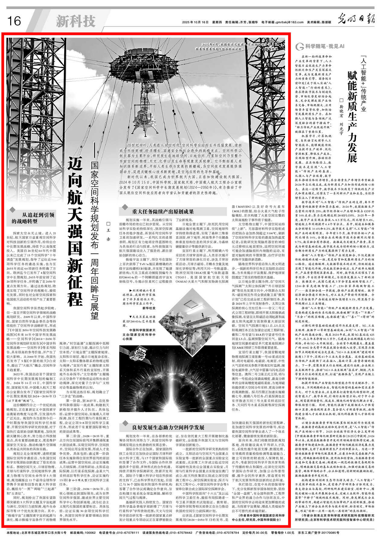 新时代以来,我国已成为世界航天大国,正在加快建设航天强国。2024年10月15日,中国科学院、国家航天局、中国载人航天工程办公室联合发布了《国家空间科学中长期发展规划(2024—2050年)》,有力推动了中国从既往空间科技应用者向宇宙认知贡献者的历史性跨越。