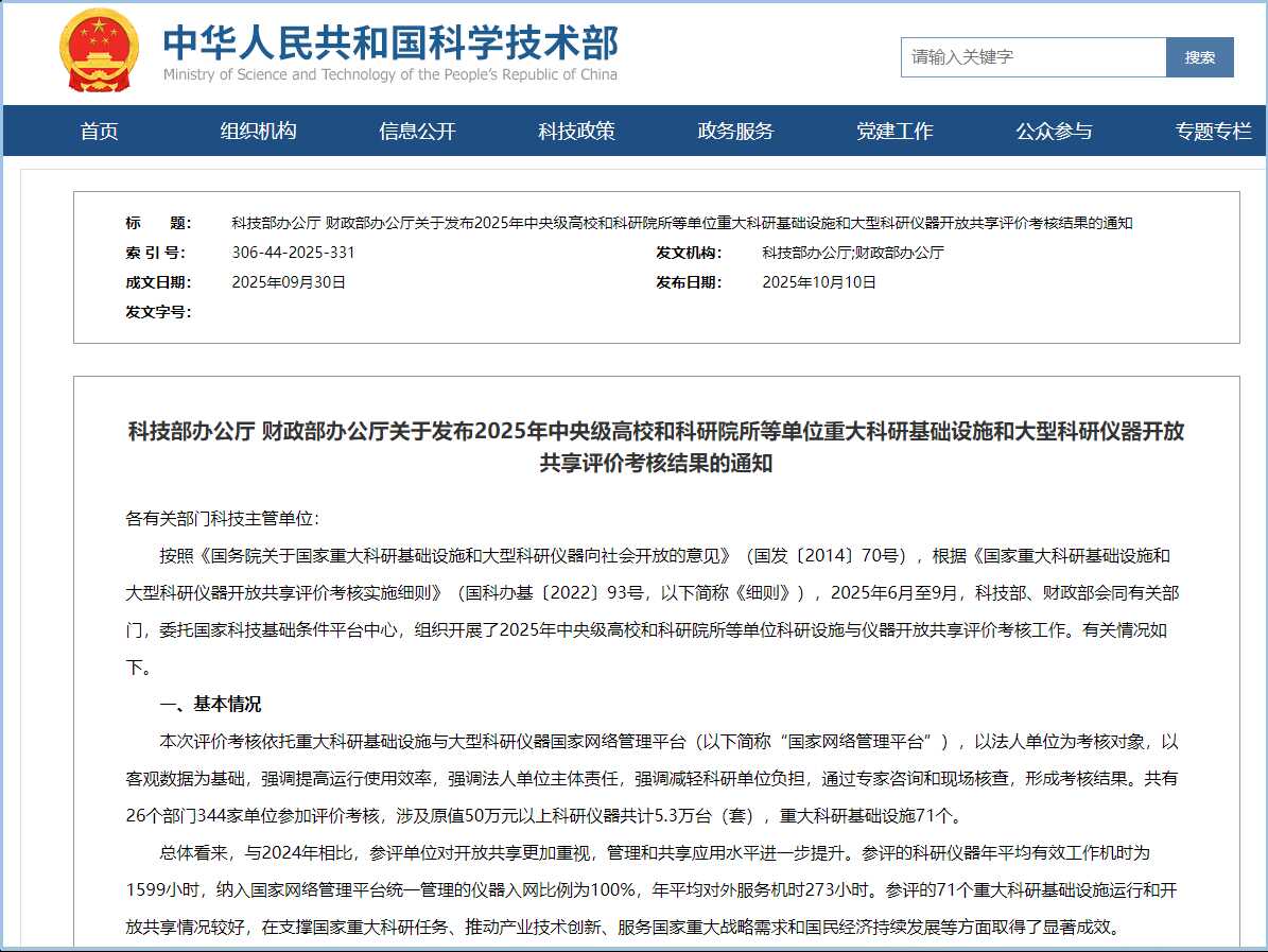 空间中心连续八年在国家大型仪器开放共享评价考核中荣获“...