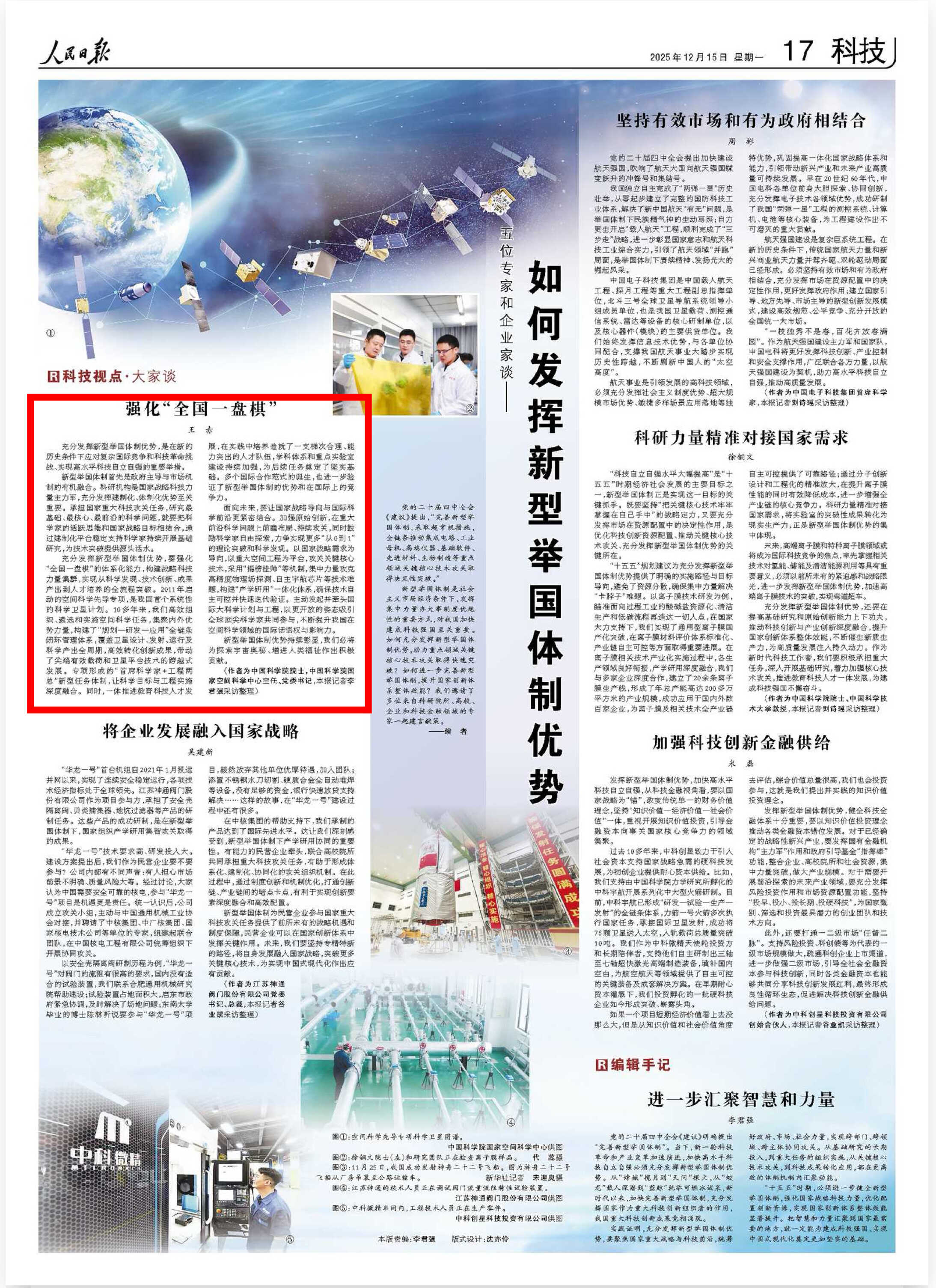 新型举国体制为民营企业参与国家重大科技攻关任务提供了前所未有的战略机遇和制度保障,民营企业可以在国家创新体系中发挥关键作用。未来,我们要坚持专精特新的路径,将自身发展融入国家战略,突破更多关键核心技术,为实现中国式现代化作出应有贡献。